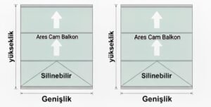 Silinebilir giyotin cam balkon hesaplaması yapılırken yukarıda düz giyotin cam balkon hesaplaması yaparken kullandığımız yöntemler tamamen aynıdır.